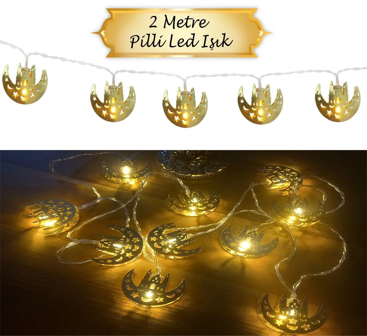 Cami Ay Kandili Ramazan Ayı Konsepti 2 Pilli Led 2 Metre Süsleme Dekor Işık