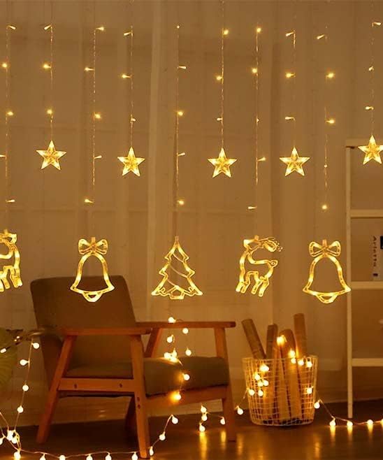 Perde Işıkları Pille Çalışır, Geyik Çanları Yıldızları Kız Çocuk Yatak Odası Pencere Perdesi Yıldız Peri Şerit Işıkları İç Mekan Düğün Ev Duvar Dekorasyonları için