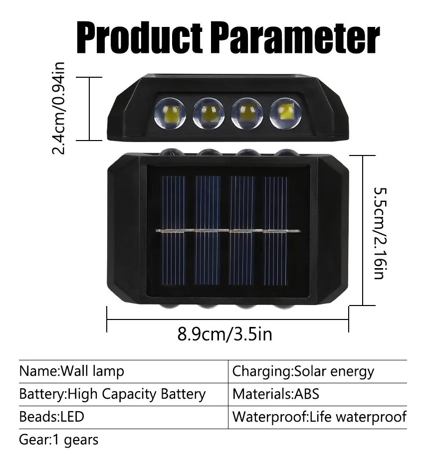 Modern 8 Ledli Solar Güneş Enerjili Bahçe Balkon Duvar Aplik Dekor Aydınlatması