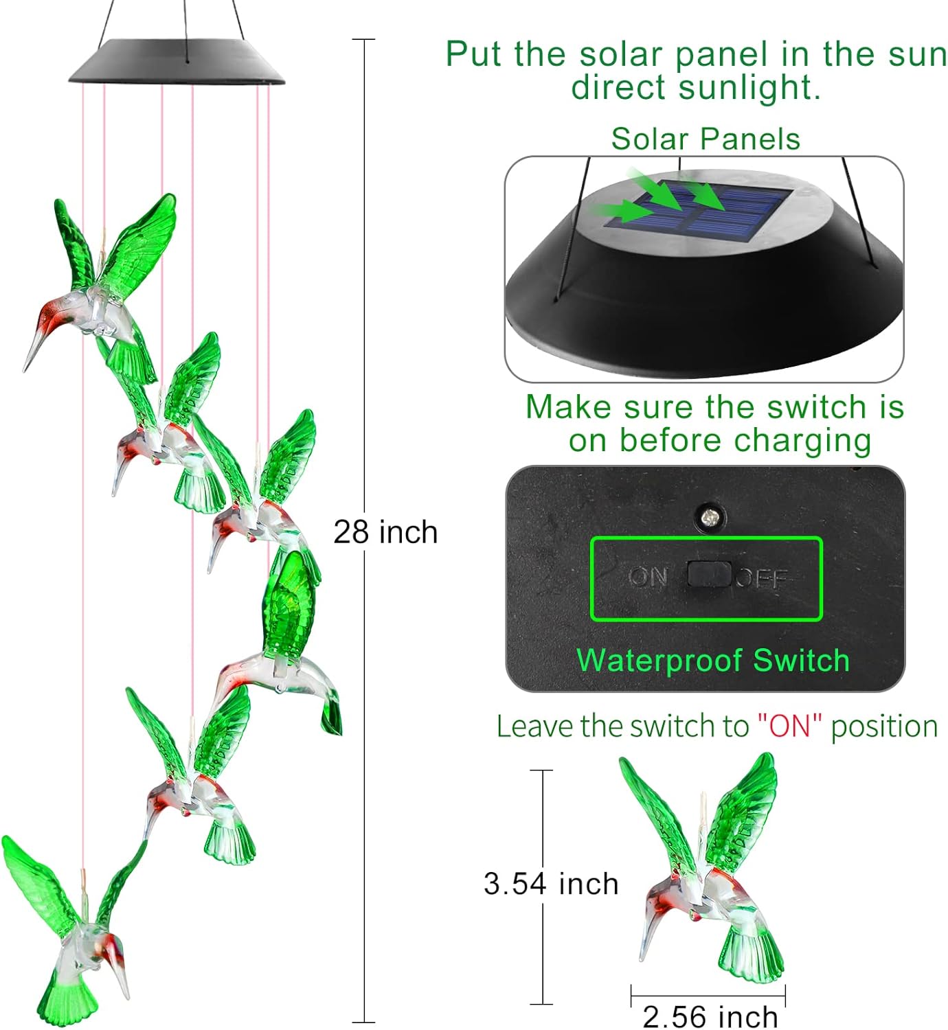 Solar Güneş Enerjili Sinek Kuş Ledli Bahçe Teras Balkon Dekor Aydınlatma Işık