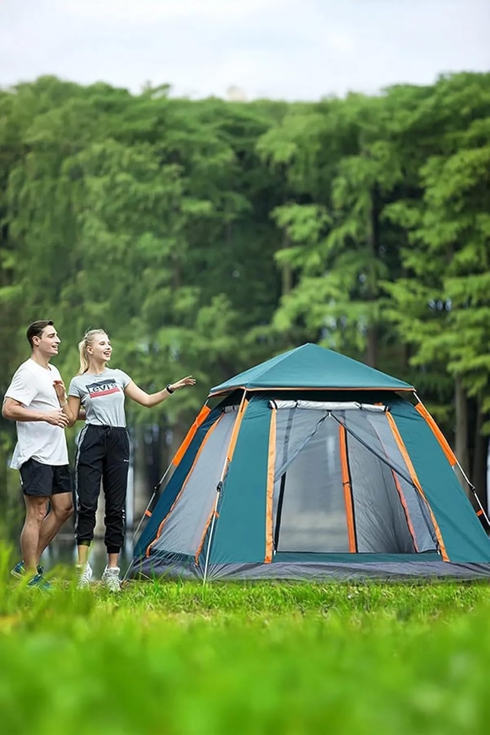 Kamp Çadırı Otomatik Kuruma Nem Tutmaz 215x215x145 cm Yeşil Renk, kumaş 210d oxford, zemin: 190t polyester.